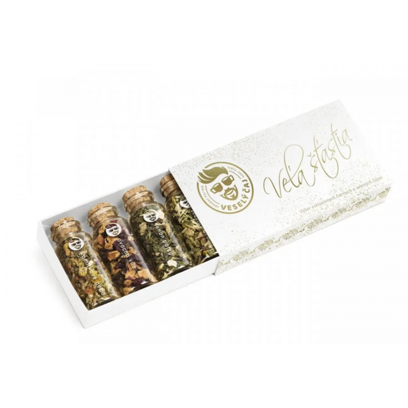 Dárková sada sypaných čajů "Hodně štěstí" je perfektním způsobem, jak vyjádřit své přání všeho dobrého a je perfektním dárkem pro narozeniny, svátky, jako vyjádření díku nebo jen tak pro radost. Překvapte své blízké dárkem, který nejen zahřeje, ale i vykouzlí úsměv na tváři.