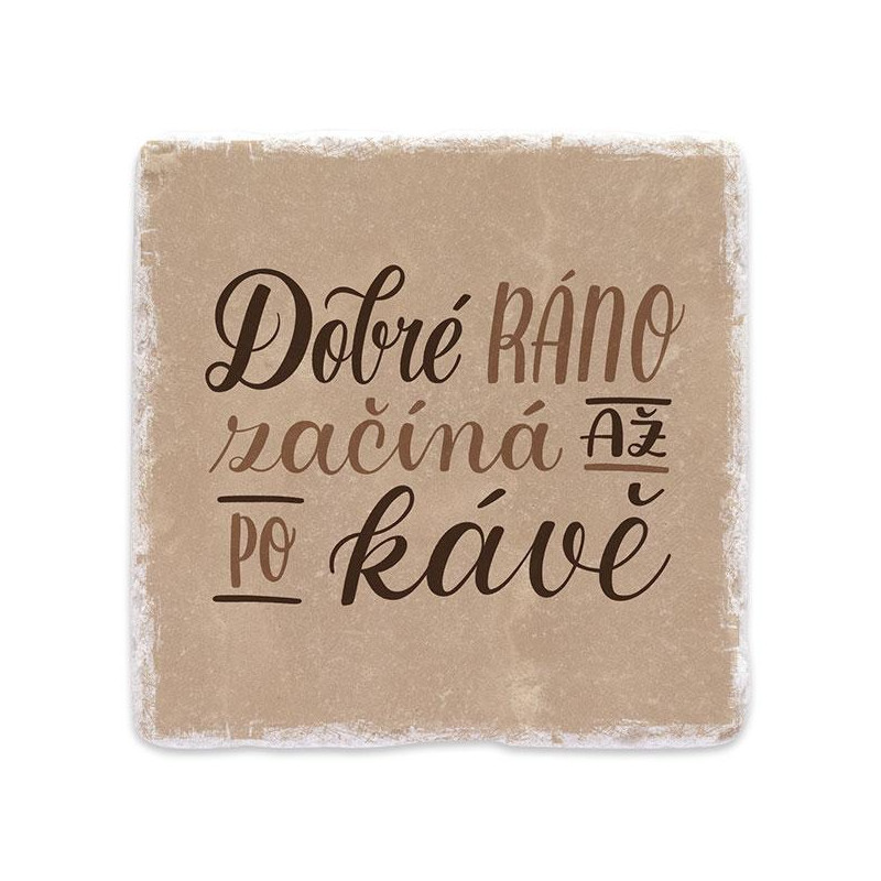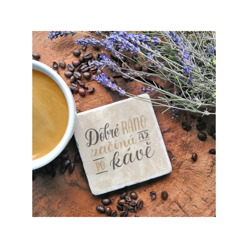 Mají váš dědeček nebo babička rádi kávu? Pak jistě ocení praktický a originální podtácek s krásným sloganem. A pozor, nejedná se o jen tak obyčejný podtácek. Tento je vyrobený z přírodního kamene – italského mramoru. Každý kámen je díky zvrásnění jedinečný a každý kousek je originál. Nikdy nenajdete dva úplně stejné. Tento tácek je zajímavý také svým nápisem: „Dobré ráno začíná až po kávě"