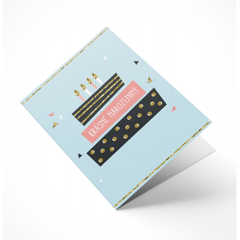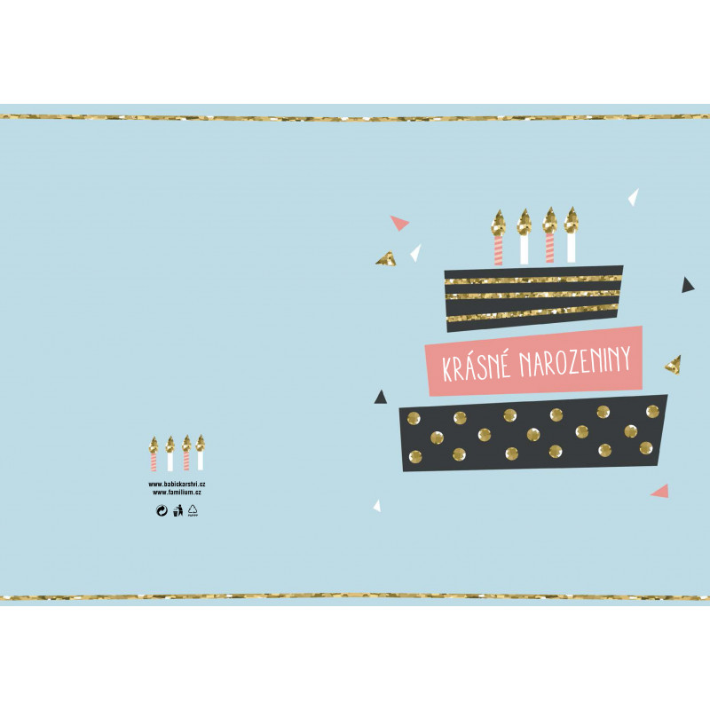 Přáníčko má velikost A5 a je vytištěno na kvalitním papíře (gramáž 240g) a dodáváno v bílé obálce.