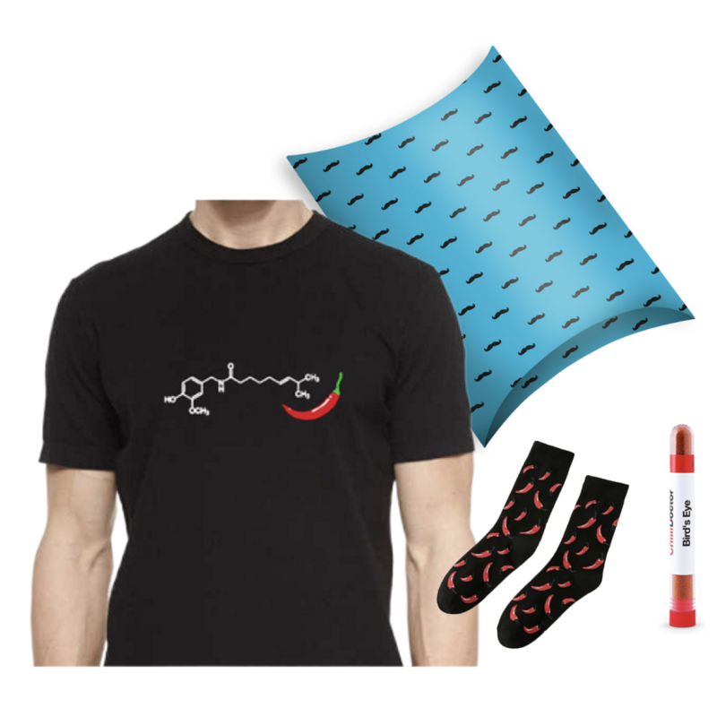 Vo vnútri darčekovej krabice sa nachádzajú hneď tri „ostré“ darčeky. Tričko chilli pre „ostrého“ muža, ktoré je vyrobené z kvalitnej a pohodlnej bavlny so vzorcom kapsaicínu, chilli prášok zo štipľavých papričiek, ktorý dodá každému pokrmu ten správny šmrnc a štýlové a pohodlné pánske ponožky so vzorom chilli papričiek.
