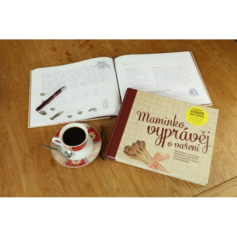 Otevřená knížka pro uchování rodinných receptů, kuchařských tradic a zkušeností. Maminka nebo babička, která ráda vaří, bude moci zaznamenat své postupy, které jsou pro ní samozřejmé, ale pro nás cenné. Pokrm, vykouzlený jejíma rukama, je právě ten od maminky, na kterém si tolik pochutnáváme.