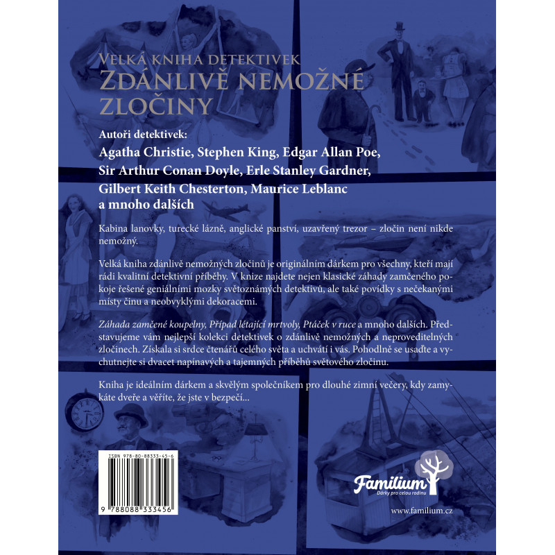 Záhada zamčené koupelny, Případ létající mrtvoly, Ptáček v hrsti a mnoho dalších. Představujeme vám nejlepší kolekci detektivek o zdánlivě nemožných a neproveditelných zločinech. Získala si srdce čtenářů celého světa a uchvátí i vás. Pohodlně se usaďte a vychutnejte si dvacet napínavých a tajemných příběhů světového zločinu.