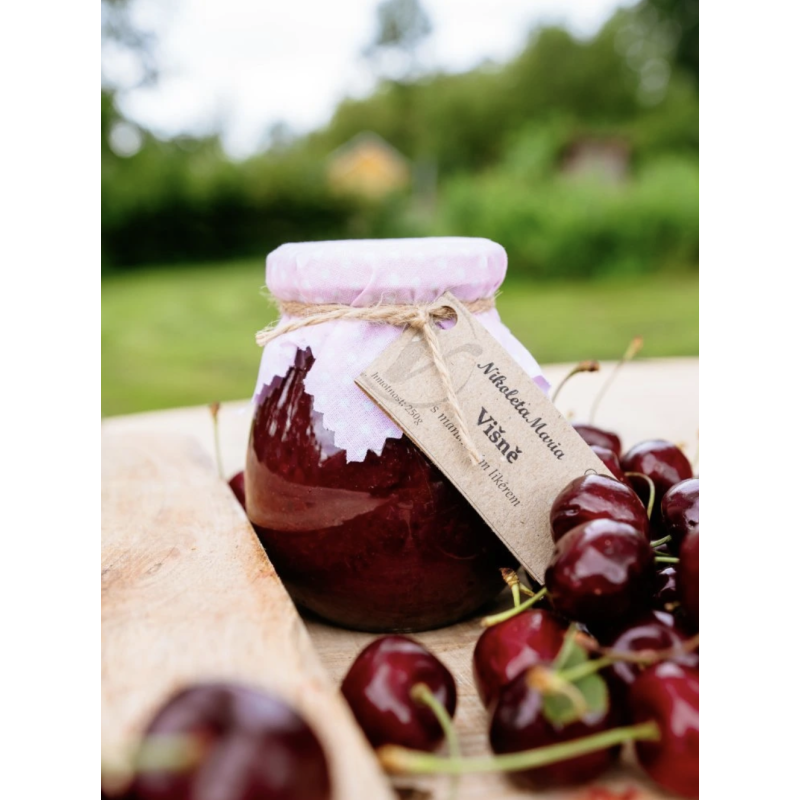Složení: višně (84 %), cukr, citrónová šťáva, mandlový likér (1 %), pektin.
