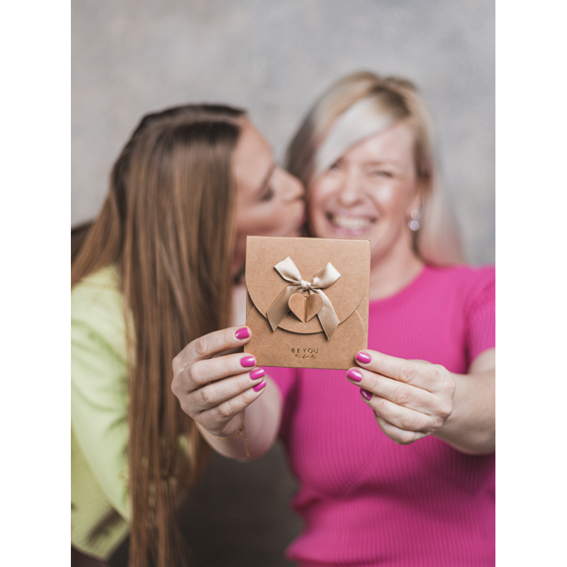 Dárkové balení obsahuje náramek s přívěškem, dárkovou kartičku a dárkovou obálku s mašlí.
