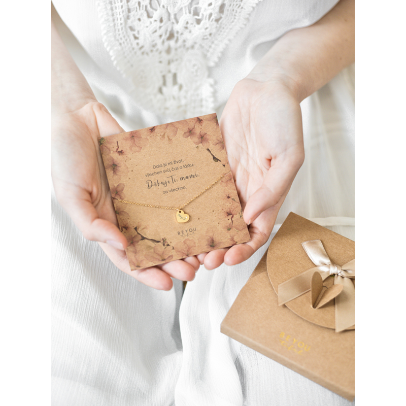 Pokud hledáte dokonalý a výjimečný dárek pro vaši maminku, pak vězte, že tento dárkový set v podobě řetízku s přívěškem na krásné kartě s motivem třešňových květů. Přívěškem pozlaceným růžovým zlatem s gravírovaným nápisem "Děkuji ti" vyjádříte svou neskonalou vděčnost za vše, co pro vás maminka udělala.