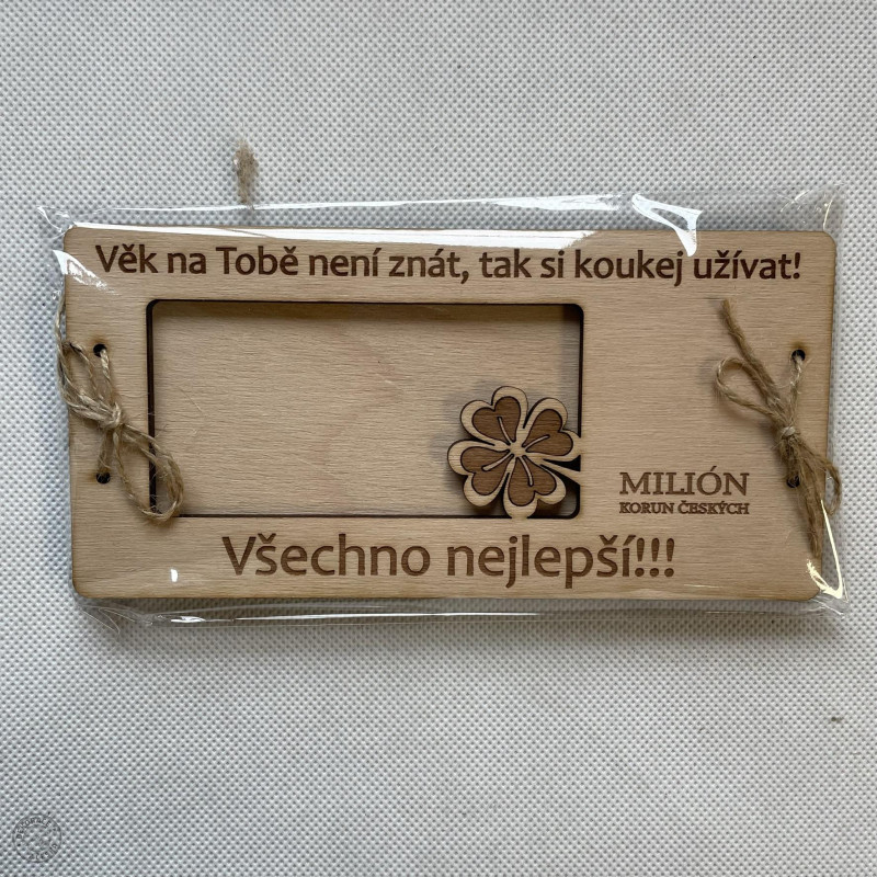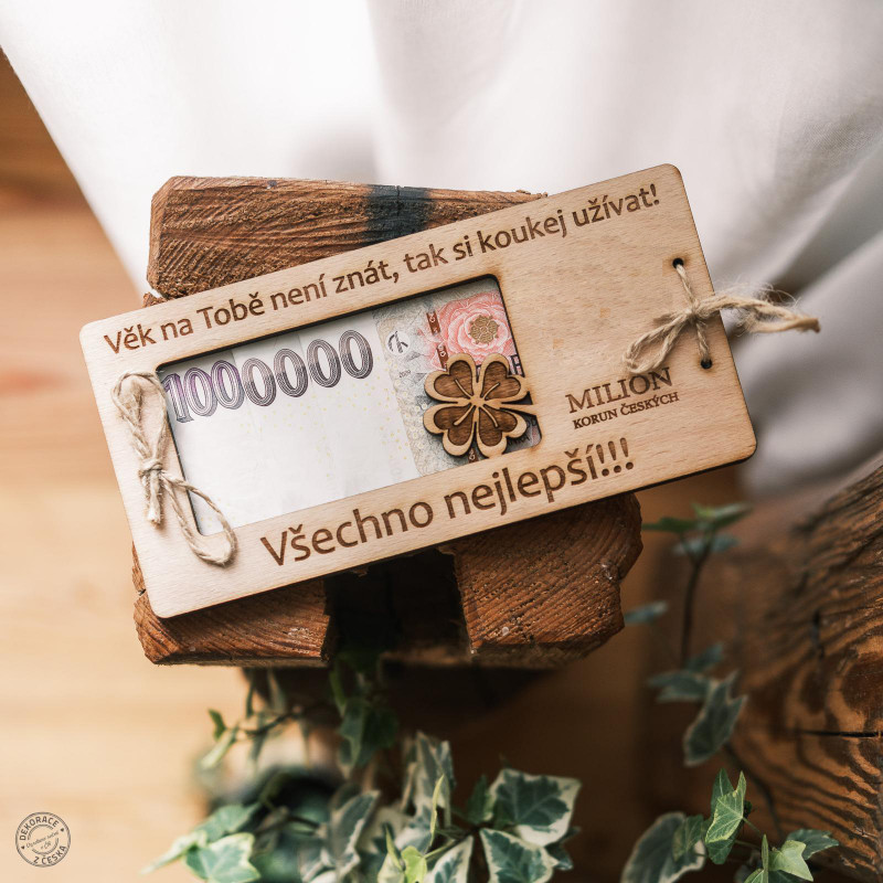 Přemýšlíte o dárku k narozeninám? Chcete darovat peníze, ale klasická obálka vám přijde obyčejná? Máme pro vás originální tip, dřevěné přání s milionem korun k narozeninám. Můžete jím obdarovat maminku, babičku, tatínka nebo dědečka, třeba ke krásným kulatinám. Dřevěné přáníčko je navíc krásná dekorace a dovnitř můžete vložit finanční obnos dle vašeho uvážení. Darovat peníze můžete opravdu netradičně, co říkáte?