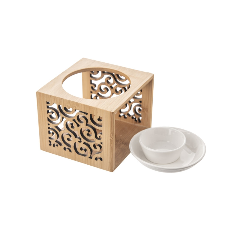 Aromalampa představuje velmi vkusný a oblíbený dárek pro vaše blízké. Vyřezávaný dekor zaujme na první pohled. Aromalampa je velmi pěkně zpracovaná a stane se nejen příjemným společníkem k večerům u pěkné knihy nebo u televize, ale také vkusnou dekorací například do obývacího pokoje. Stačí už jen vybrat vhodný olejíček, zapálit čajovou svíčku a vychutnat si vůni a teplo domova.