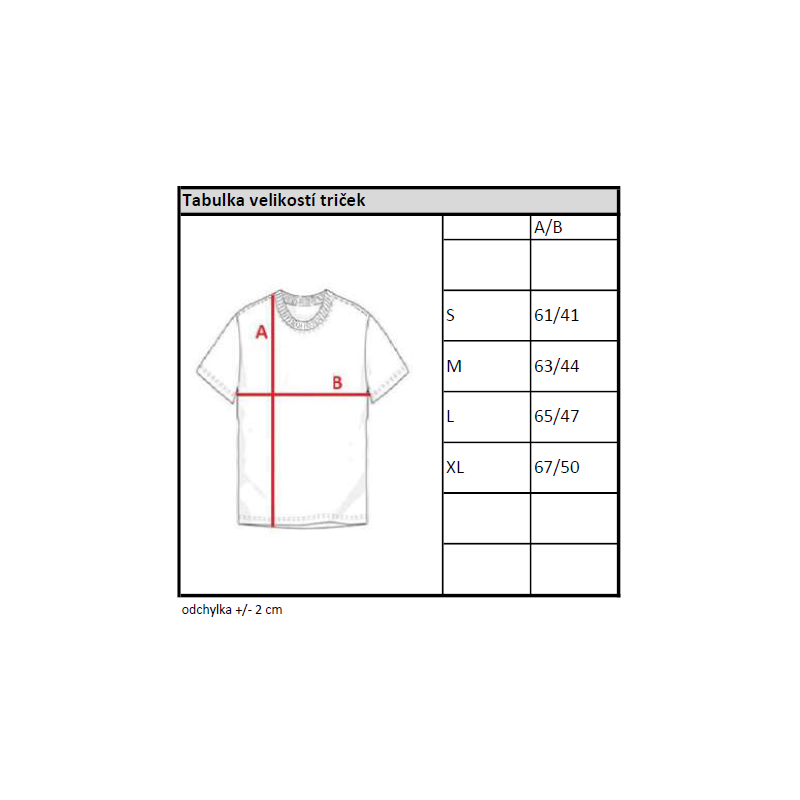 Tričko je vyrobeno ze 100% bavlny, 150 g.