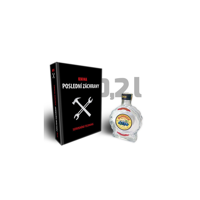 Máme pro vás Knihu poslední záchrany. Tato netradiční kniha v sobě skrývá pravý poklad - čistou slivovici R. Jelínek.