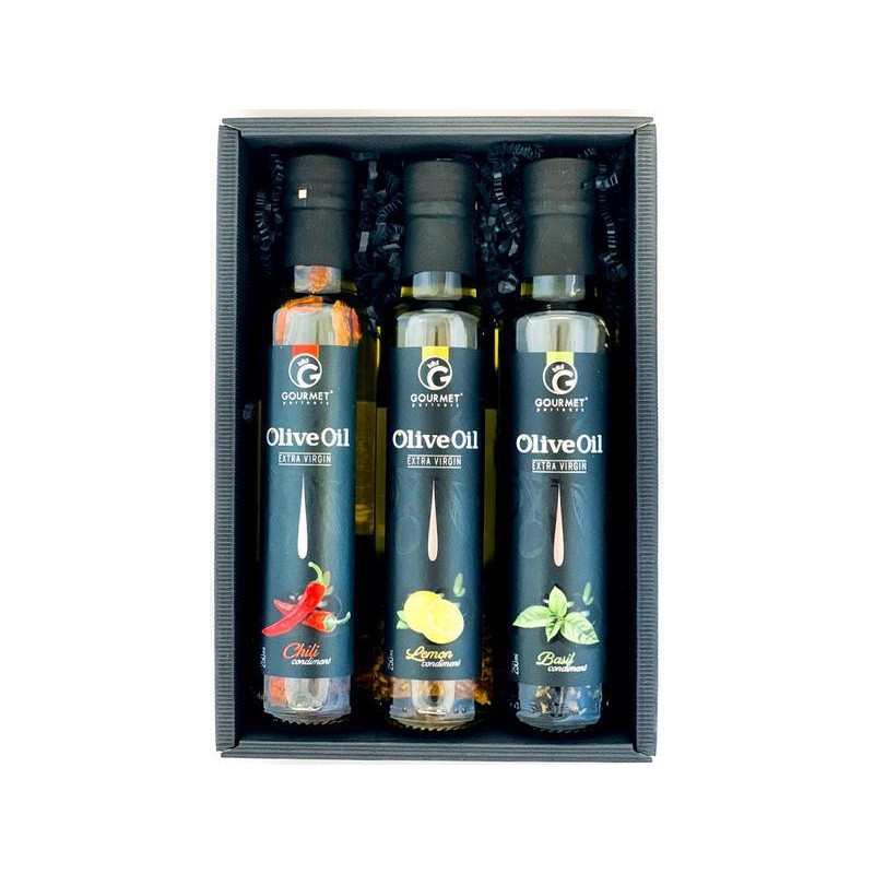 Obsah balení: 3 x extra panenský olivový olej (bazalka, citron, chilli)