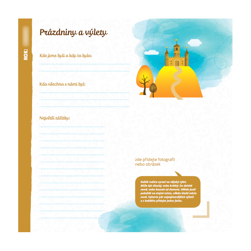 Nejsem tip na zapisování, ale jsem moc ráda, že jsem se k tomu odhodlala a především naučila i naše děti zaznamenávat události rodiny. Kniha je moc hezky strukturovaná. Vystačí na několik let.