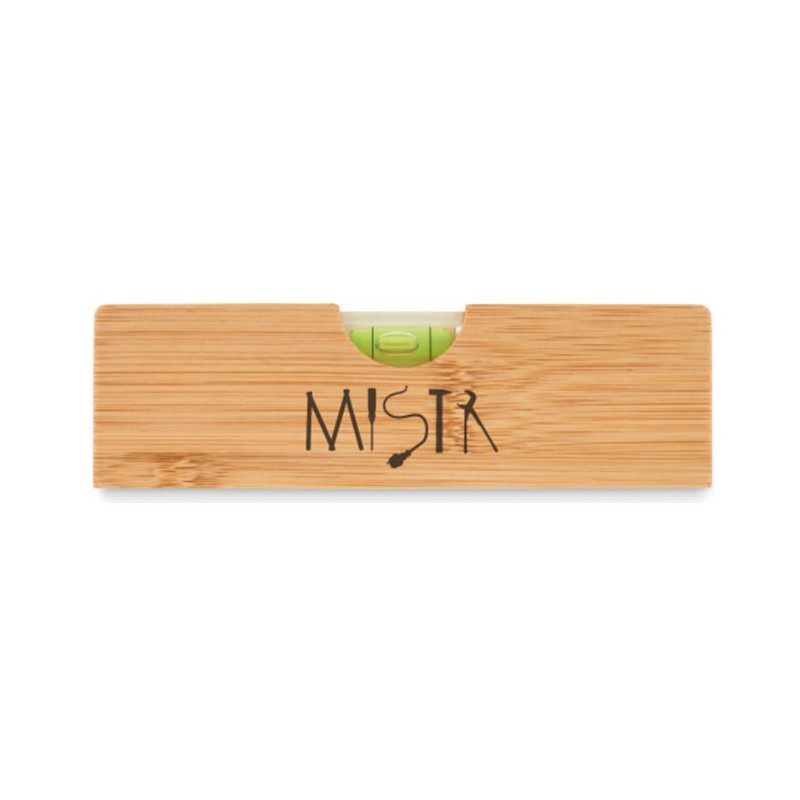 Vodováha s vygravírovaným motivem o velikosti 46 mm x 20 mm.