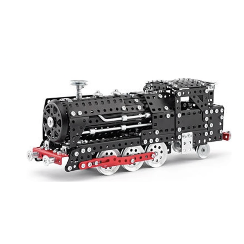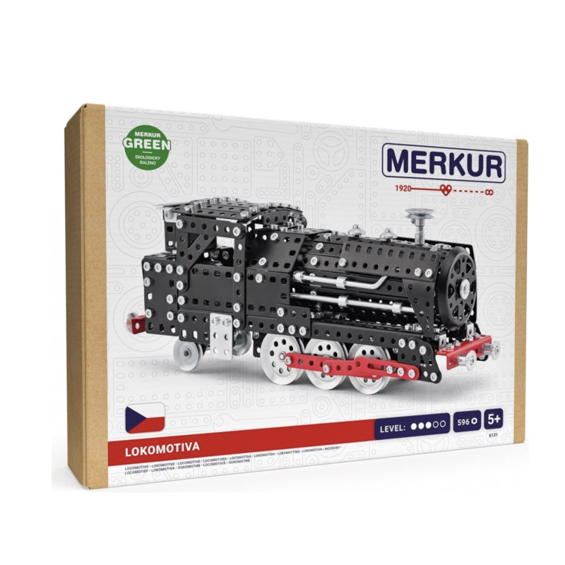 Tradiční česká kovová stavebnice, která potěší každého nadšence do železnice! Merkur LOKOMOTIVA je skvělý dárek pro dědečky, sběratele i malé stavitele, kteří obdivují svět vlaků. Obsahuje kvalitní kovové díly, šroubky, matičky a nářadí, se kterými si sestavíte model klasické lokomotivy.