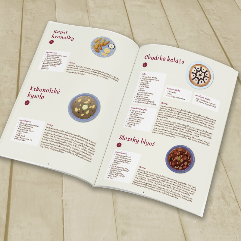 Sešit obsahuje recepty na 35 regionálních jídel, která najdete na Stírací mapě gurmánských delikates. Zkuste si recepty našich babiček doma uvařit i vy!