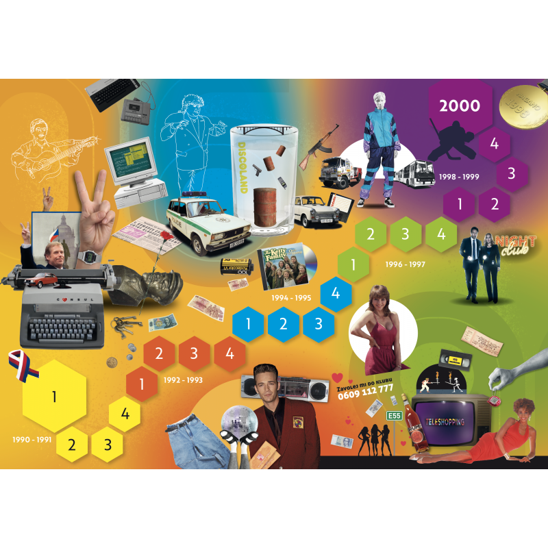 Ve hře budete popisovat výrazy týkající se devadesátých let, poslouchat a hádat dobové hity, předvádět filmy a televizní pořady a zkusíte si i rýmování. Vaším úkolem je dostat se do roku 2000 dříve než ostatní.