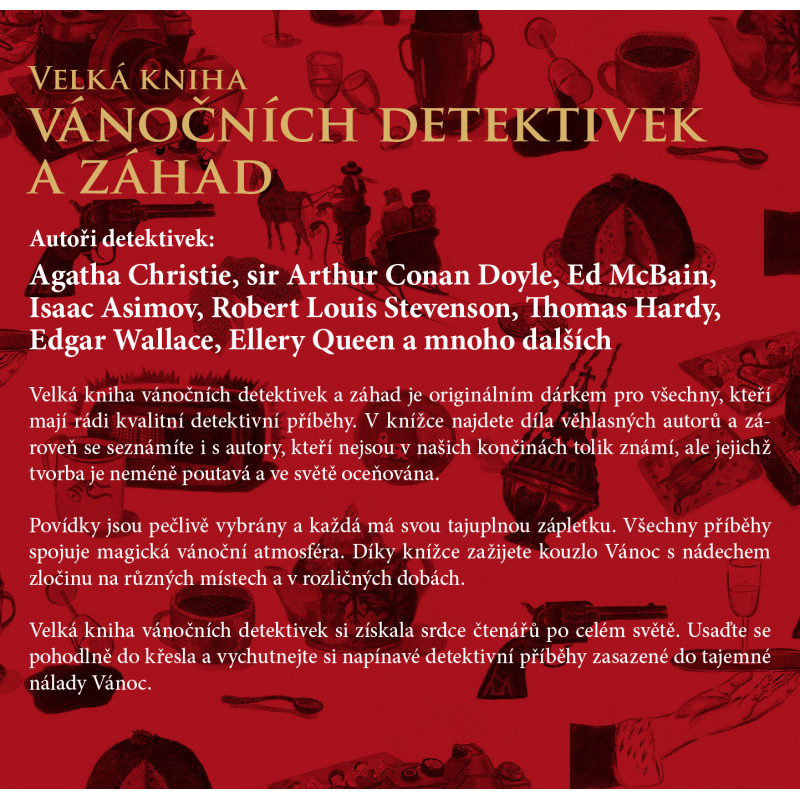 Velká kniha vánočních detektivek a záhad je vázaná v pevné vazbě, má osvědčený formát 22 x 26 cm a obsahuje originální tematické ilustrace Markéty Staré.