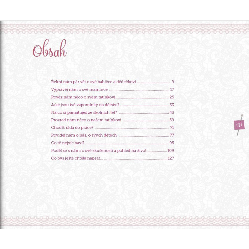 Dostala jsem ji jako dárek a jsem úplně unešená. Knížka je krásně a kvalitně zpracovaná, skvěle doplněná obrázky. Už jsem vyplnila první stránky a nejraději bych do ní psala celý den:). Doporučuji jako skvělý dárek pro všechny maminky.