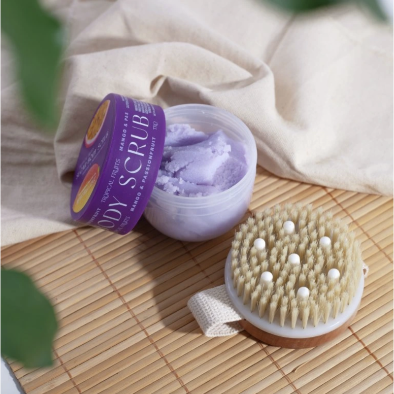 Přeneste se do tropického ráje s cukrovým tělovým peelingem Tropical Fruits – Mango & Passionfruit. Obsahuje jemné krystalky cukru, které efektivně a zároveň šetrně odstraňují nečistoty i přebytečný maz, zanechávají pokožku hladkou, hebkou a voňavou po šťavnatém mangu a exotické mučence. Díky obsaženým přírodním výtažkům – jako je mangové máslo, aloe vera a kyselina hyaluronová – působí peeling vyhlazujícím a anti‑aging efektem a zároveň podporuje celkovou svěžest a hydrataci pokožky.