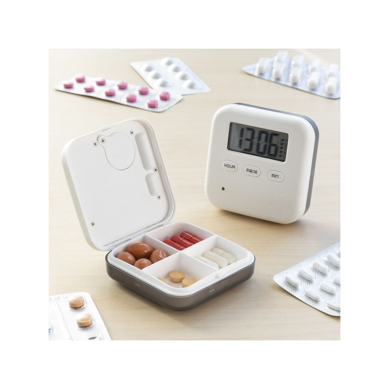 Krabička na léky užitečná pro ukládání a pamatování na léky, dokáže naprogramovat až 5 upozornění denně se zvukem a vibracemi, inovativní a funkční design, trojitá funkce hodiny, budík a časomíra, až 5 programovatelných upozornění denně.