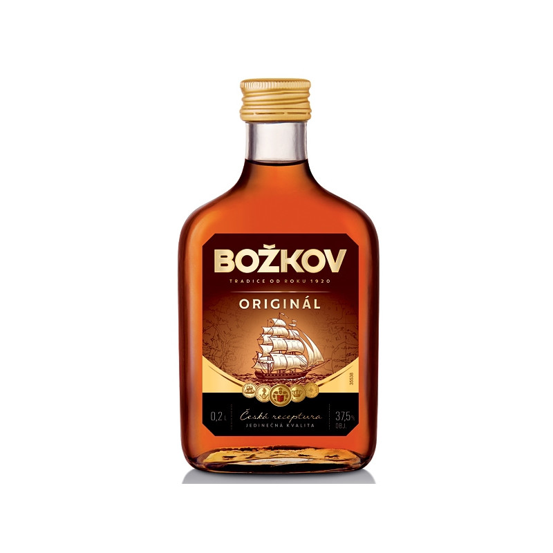 Rum: Božkov Originál, obsah alkoholu 37,5%, objem 0,2 l