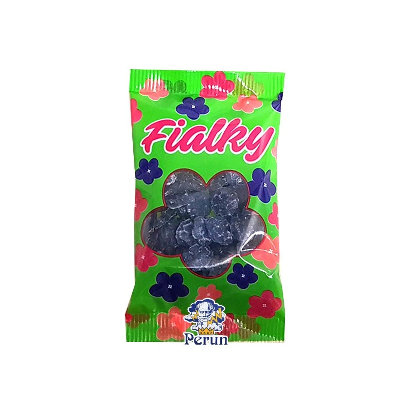 Bonbony Fialky: složení - cukr, škrobový sirup, aroma, barviva E120, E151 (čern. BN), regulátor kyselosti E 330, vyrobeno v EU, 80 g