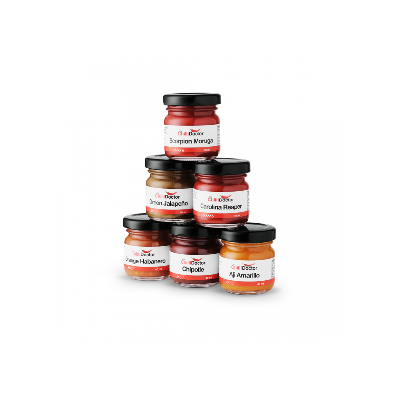 Mashe jsou naplněny do malých 40 ml lahviček a zabaleny v krásné dárkové krabičce včetně brožury, která obsahuje popis jednotlivých odrůd a informaci o pálivosti.