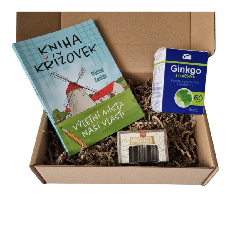 Potěšte svoji babičku nebo dědečka dárkovou sadou pro bystrou hlavu zabalenou v dárkové krabičce s tématickým obalem. Tato sada obsahuje křížovky, hlavolam a doplněk stravy Gingko obohacený o hořčík. Nejen, že jim uděláte radost něčím, co je baví, ale navíc uděláte i něco pro jejich zdraví. Díky křížovkám a hlavolamu si procvičí paměť a soustředění a díky Gingko a hořčíku budou méně unavení a vyčerpaní a jejich psychické zdraví bude v lepším stavu.