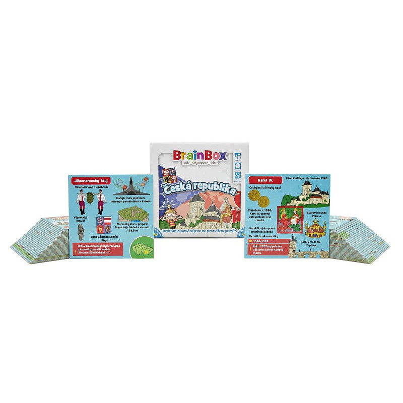Brainbox je zábavná a naučná hra, která procvičuje paměť a přináší zajímavé informace o České republice, jejích památkách, historii a zajímavostech. Je navržena tak, aby byla zábavná pro celou rodinu, ale zároveň byla jednoduchá a přístupná pro seniory.