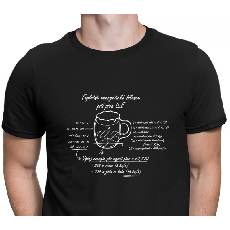 Netradiční pánské tričko, Energetická bilance piva pobaví a zaujme každého. Víte, kolik energie musíte vynaložit na vypití půllitru piva? Pojďme si to spočítat. Výsledek vás překvapí.